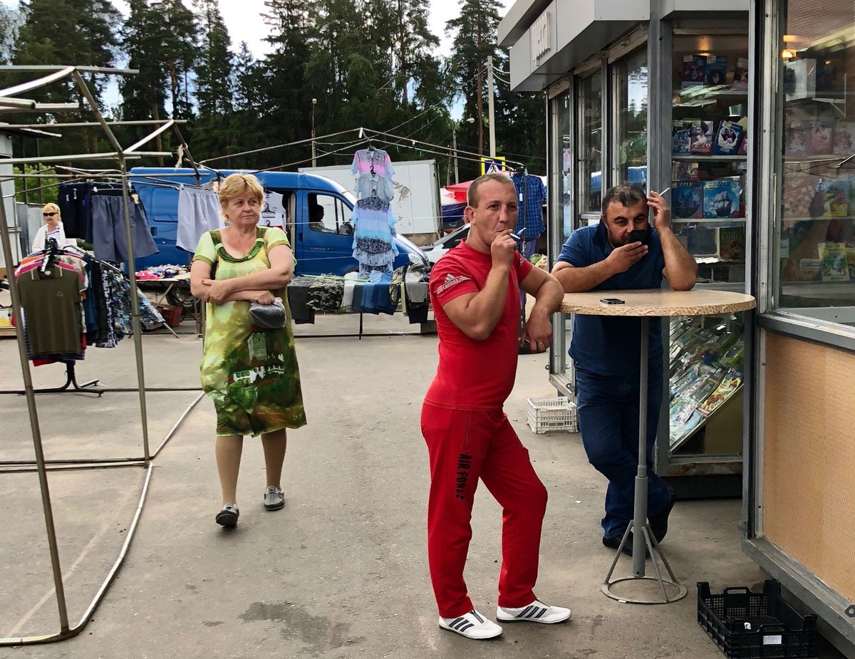 На рынке встречаются пацаны в костюмах от Adidas, похожие на персонажей 1990-х годов.