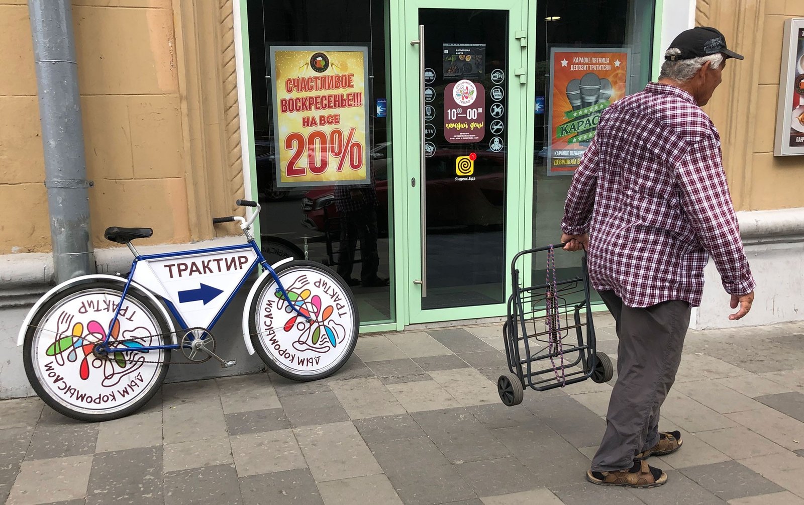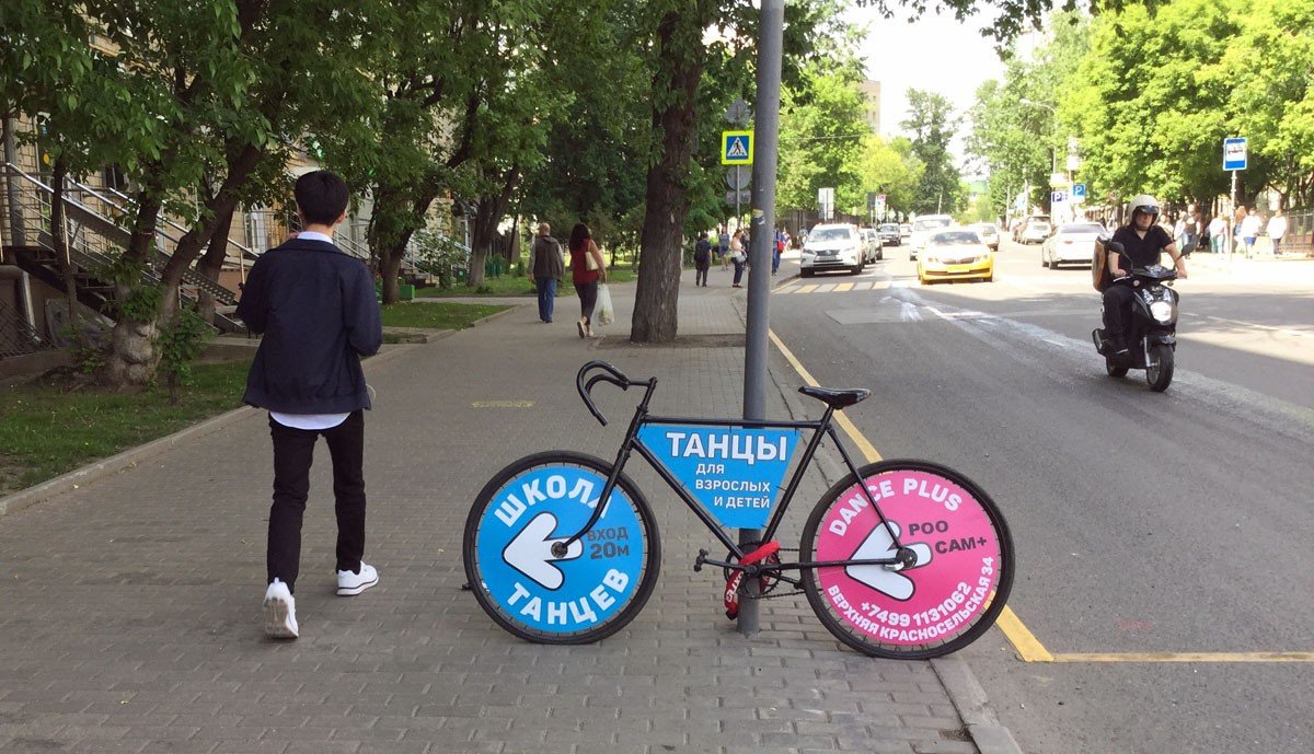Вообще-то, в Москве часто можно увидеть велосипеды с указателями и просто стоящие в качестве “украшения”.