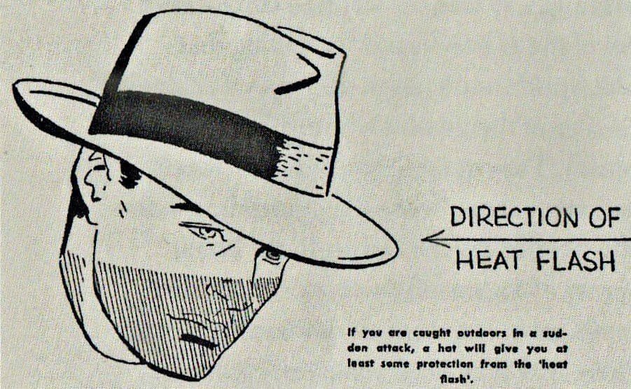 Чайникам-туристам нравилось смотреть на взрывы с расстояния, которое в то время считалось безопасным. А если вспышка была слишком яркой, предлагалось использовать такую вот шляпу.