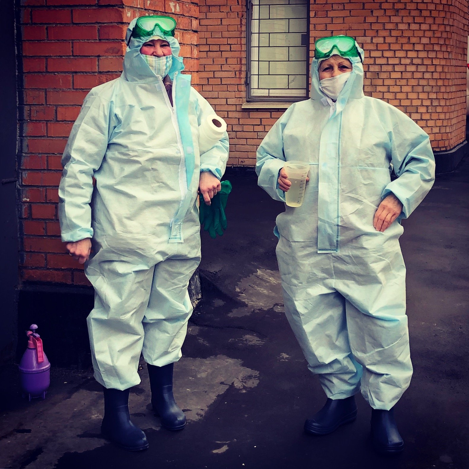 Они с удовольствием позируют для жильцов дома перед началом работы, но после окончания дезинфекции не рекомендуют покидать свои квартиры в течение 30 минут.