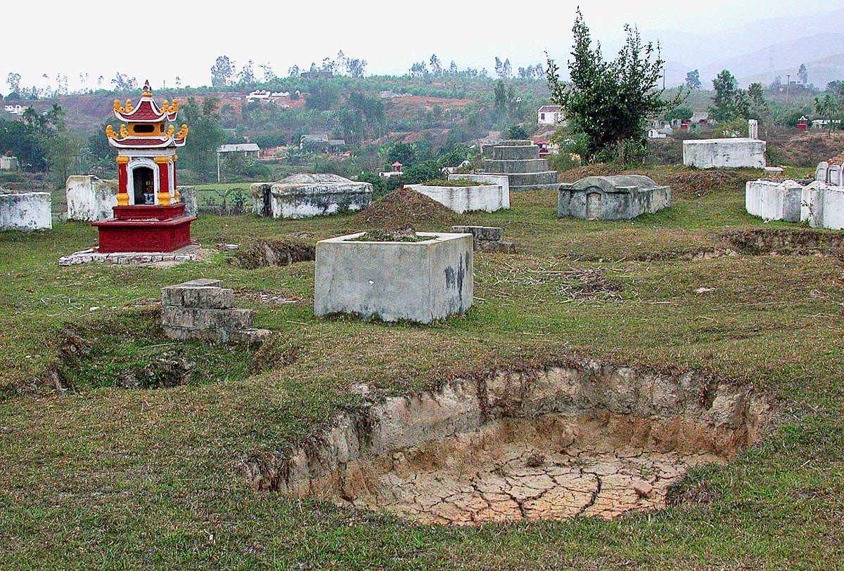 Это не обычные ямы, а бывшие могилы — дело в том, что во Вьетнаме умерших хоронят дважды, поэтому и могил требуется по две на каждого покойника.