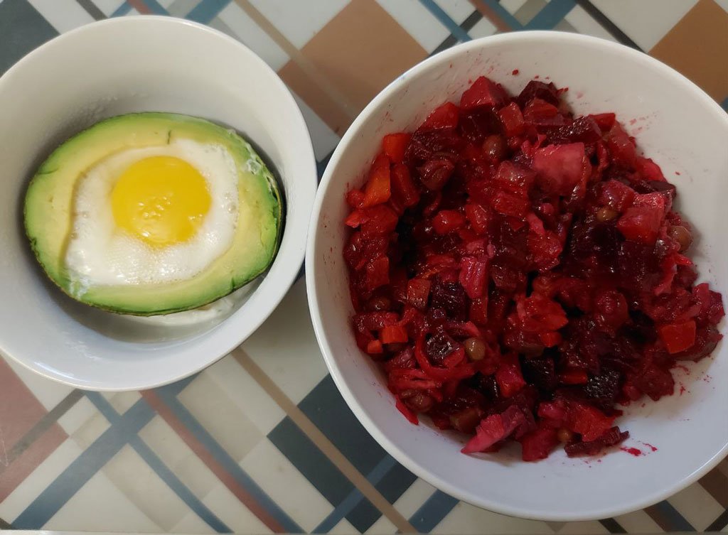 Если одного винегрета маловато, можно быстро приготовить яичницу в авокадо.