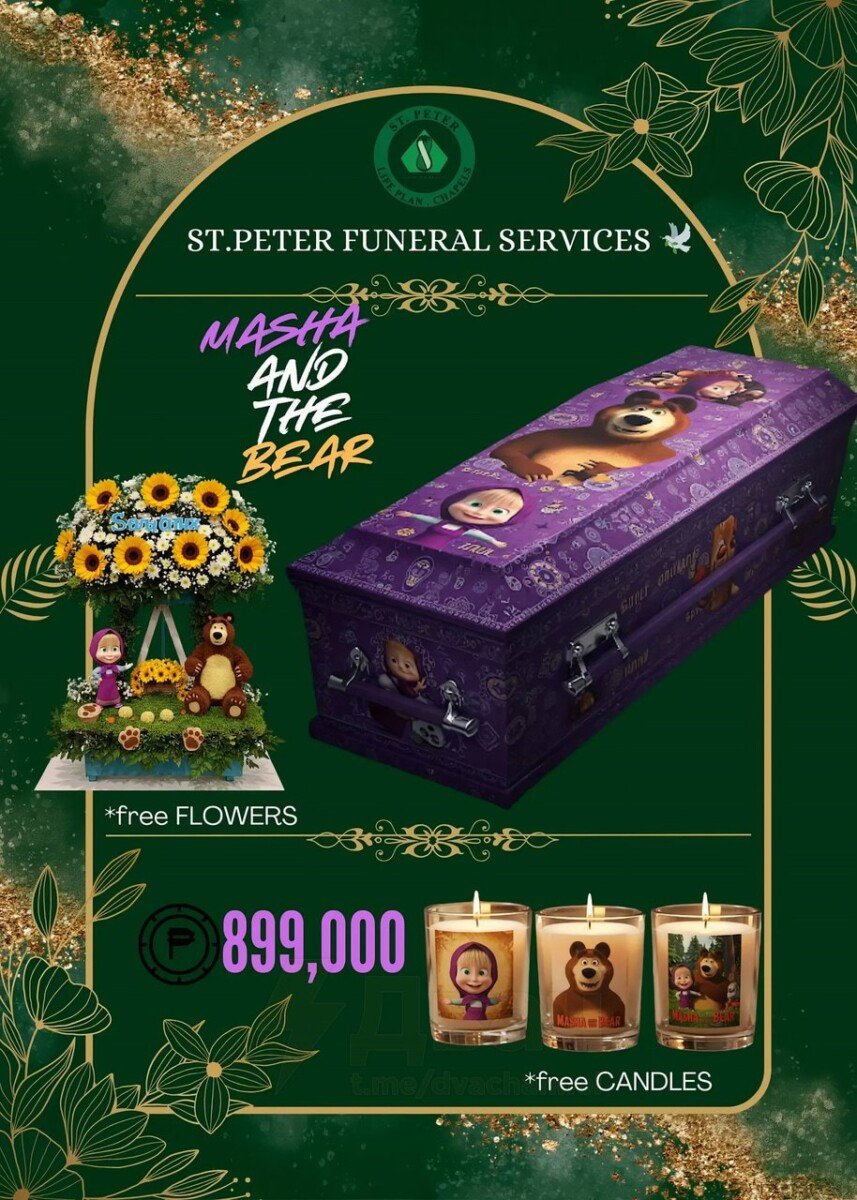Возвращаясь к Филиппинам, там во всю продаются тематические гробы, есть даже Маша и Медведь (если это не фейк).