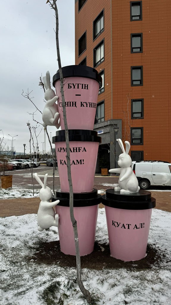 Будете в Астане, зайдите в Бум — если не увидите мечеть, ориентируйтесь на зайчиков со стаканчиками. Кафе прямо за ними.