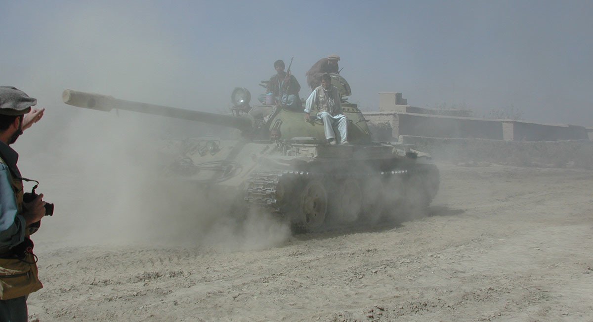 Когда не было танковых боёв, бойцы Северного альянса обычно закрывали стволы своих железных коней тряпками, чтобы туда не попадала пыль…