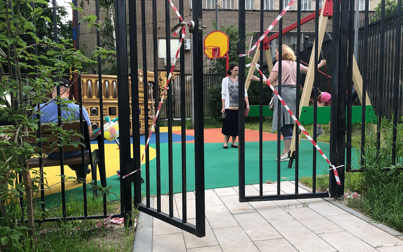 Родители самостоятельно начинают сезон на закрытых (официально) детских площадках...