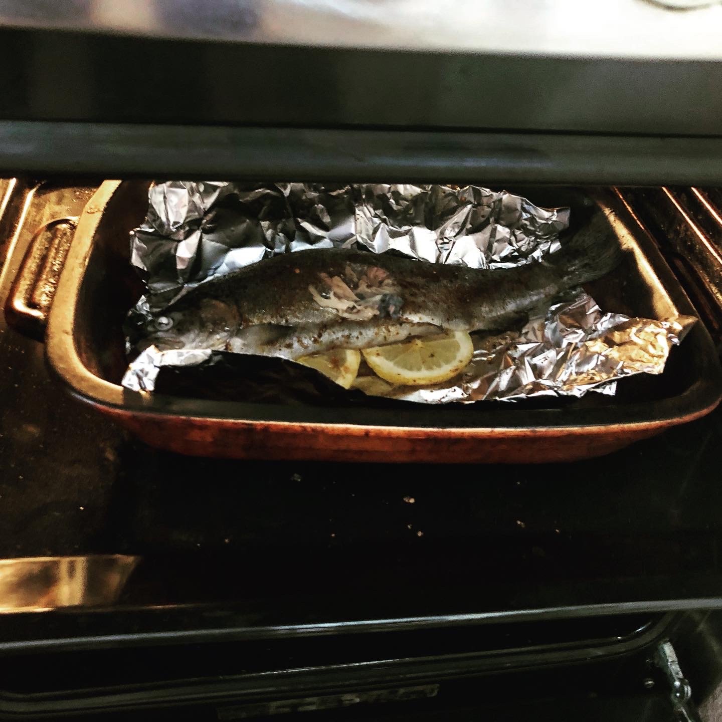 Поливаете рыбу оливковым маслом и посыпаете любимыми специями.